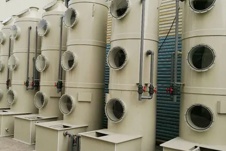 Cleans gas using packed material.
